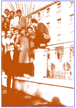 În anul III, cu colegi de grupă, în faţa căminului „30 Decembrie”. |