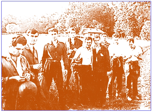 Cei patru muşchetari: Ţârcomnicu, Stan, Lupchian şi Ganea. Mai jos: Pufu, Iordache, Zăgreanu, Gaal, şi gânditorul de la Breaza - Nicolae.