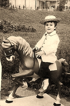 Andu, pe plajă și călare pe un căluț pentru pozare |