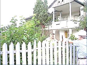 Nicușor și Mia la poarta casei lor |